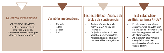 variables moderadoras como tamaño, edad y actividad económica de la empresa. Se propone así, una metodología que
